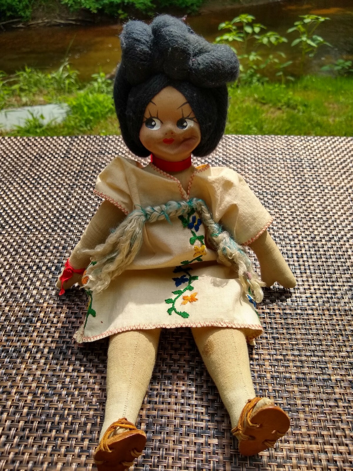 Mexican Cloth Girl Doll Hand Made W Yarn Hair Leather Huaraches Vintage Ebay
